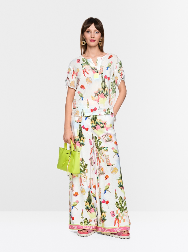 Couleur : fond blanc avec imprimé multicolore cactus et santiag