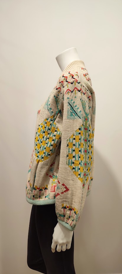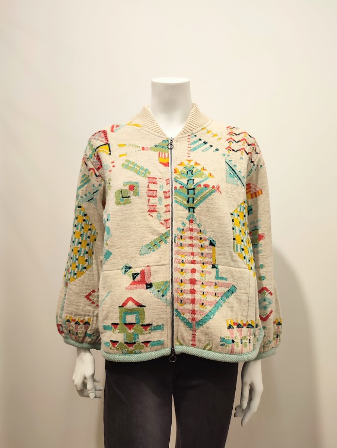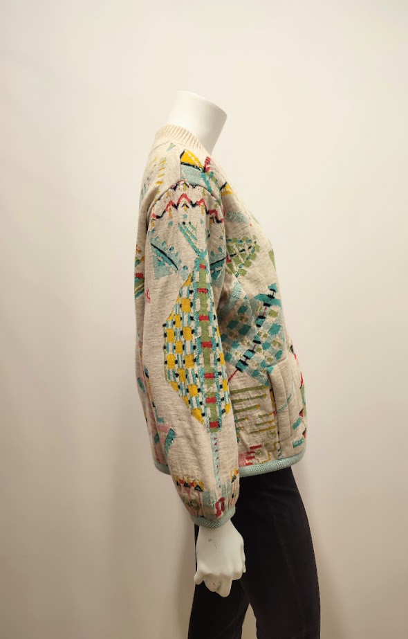 Coupe oversize – maille jacquard – col – 2 poches – fermeture éclair double curseur