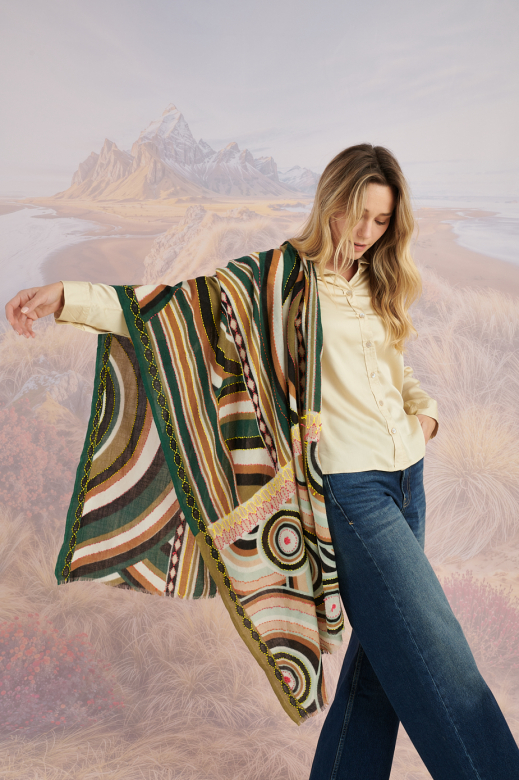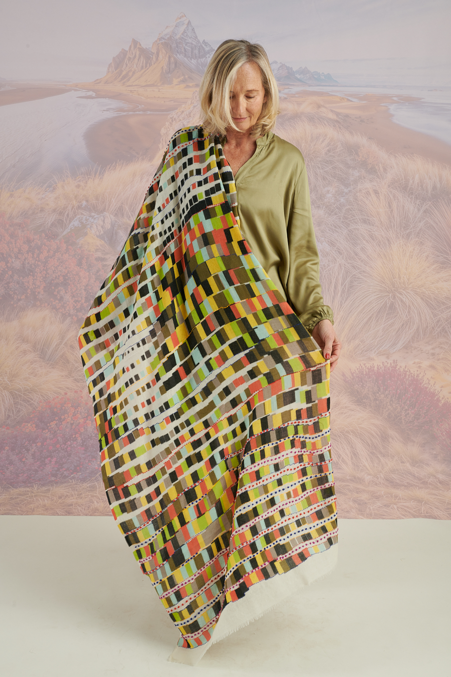 Echarpe storiatipic 100 % laine, aux motifs géométriques.