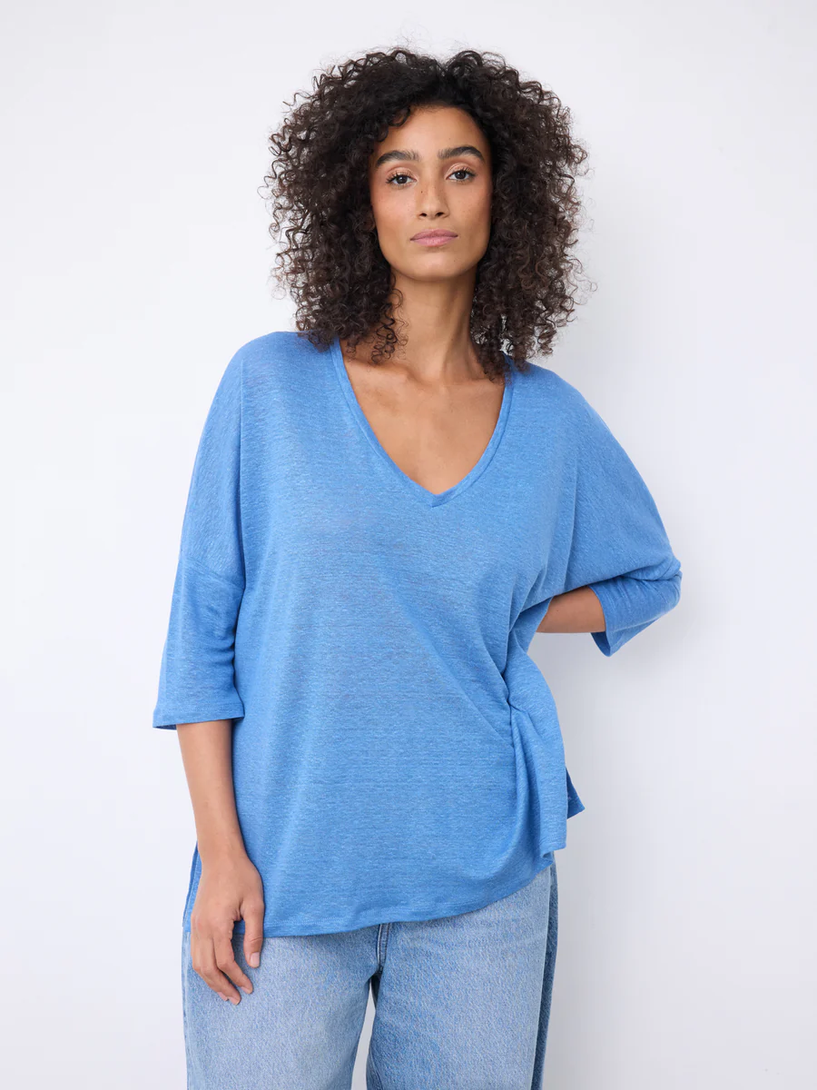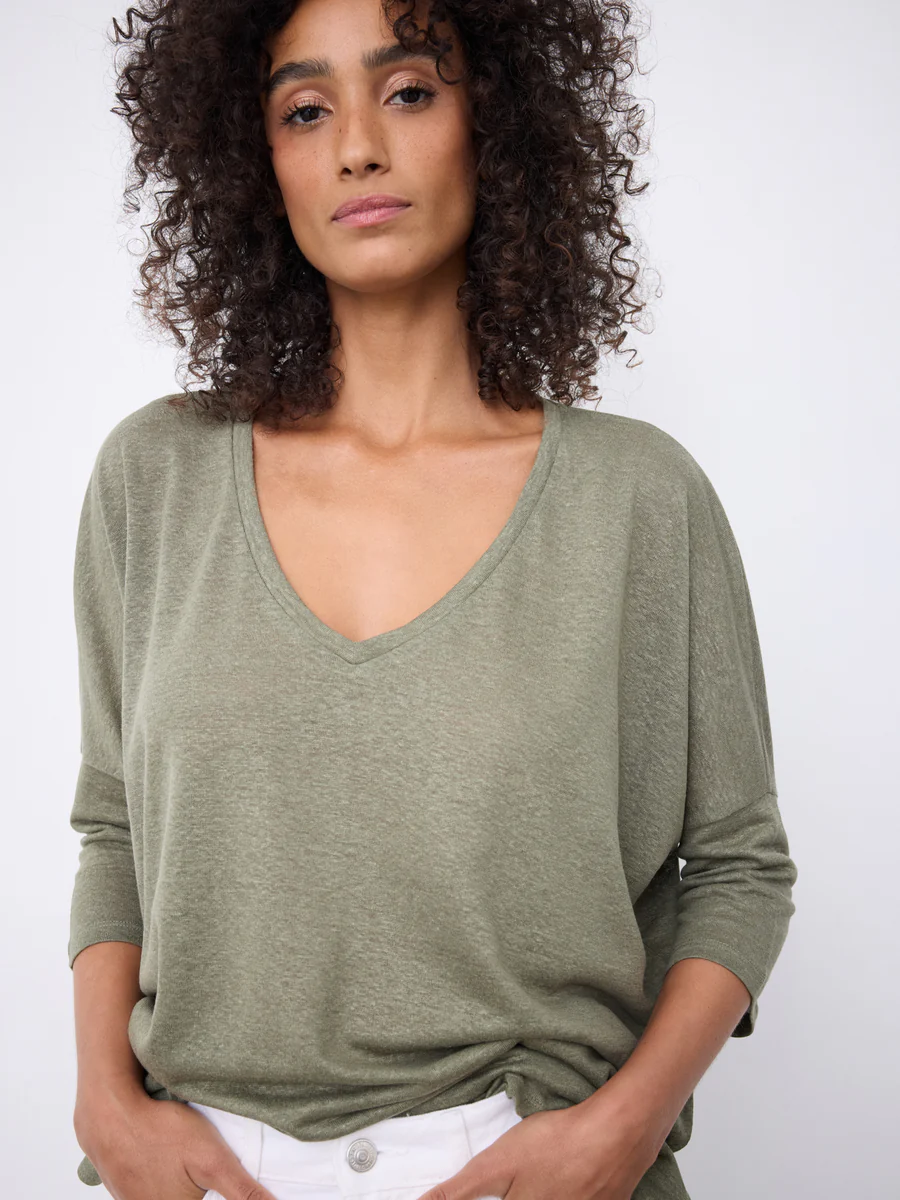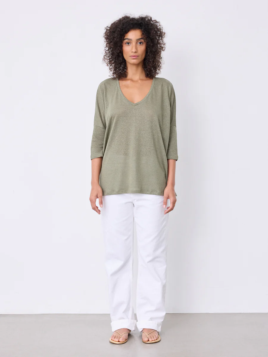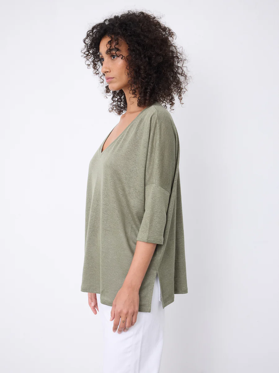 Coupe ample – col V – manches 3/4 – fendu sur les côtés