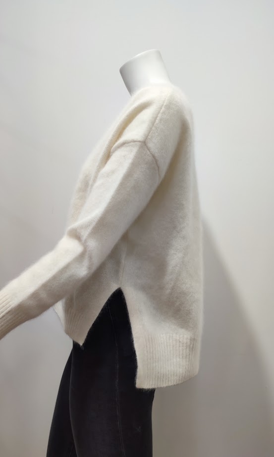 Gilet oversize – col v – boutonné devant – plus long derrière – fendu sur les côtés