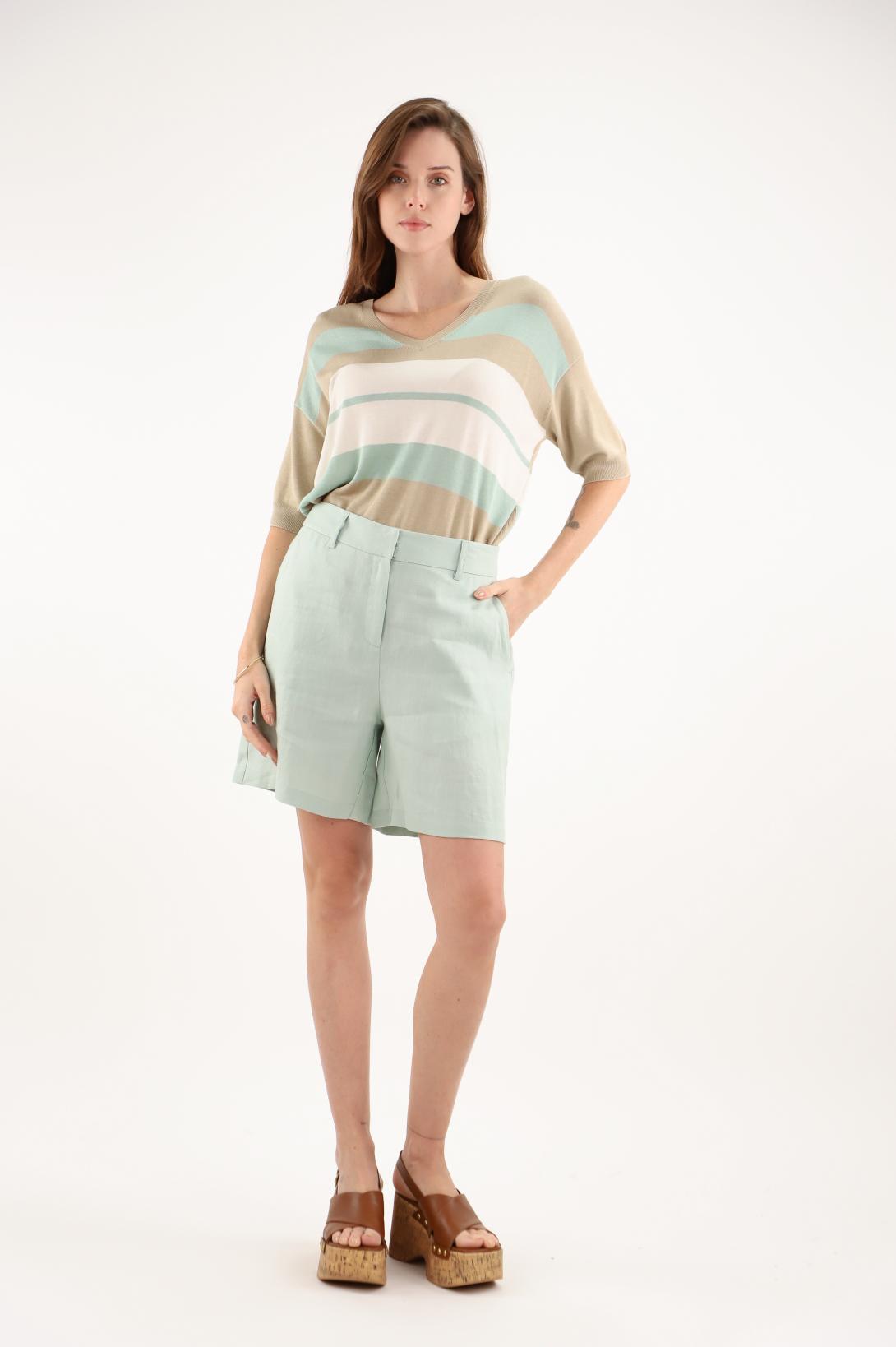 Coupe légèrement ample – petit col V – manches courtes