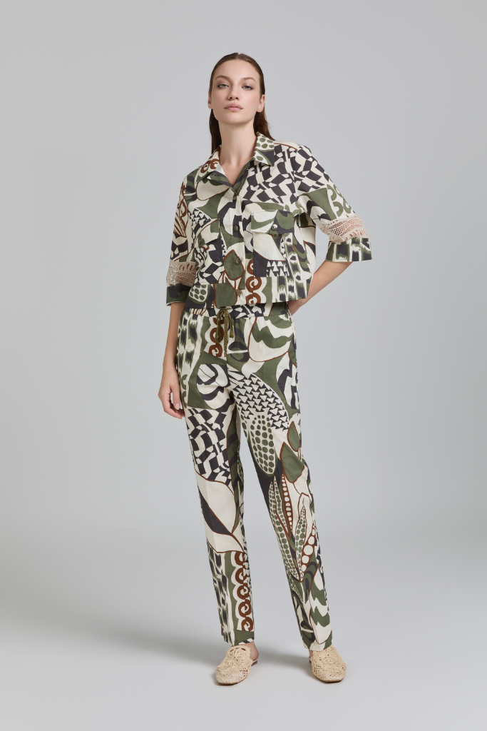 Mini ceinture décorative, amovible sur l’épaule gauche – impression beige sur le bout des manches et sur le col
