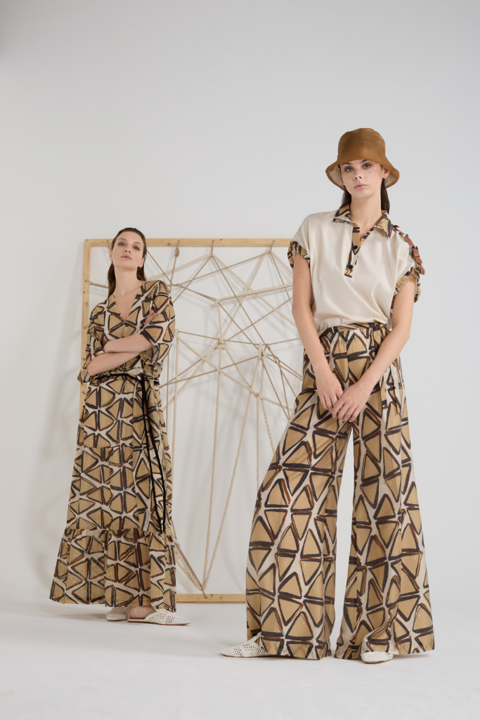 Un look moderne pour ce polo multi-matières. Magnifique avec le pantalon large et fluide