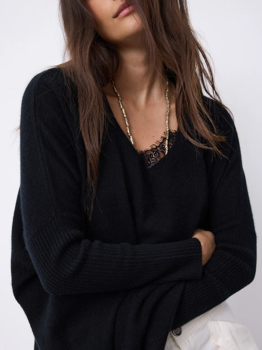 Coupe oversize – col v – 2 fentes sur les côtés – côtelé sur les avant-bras